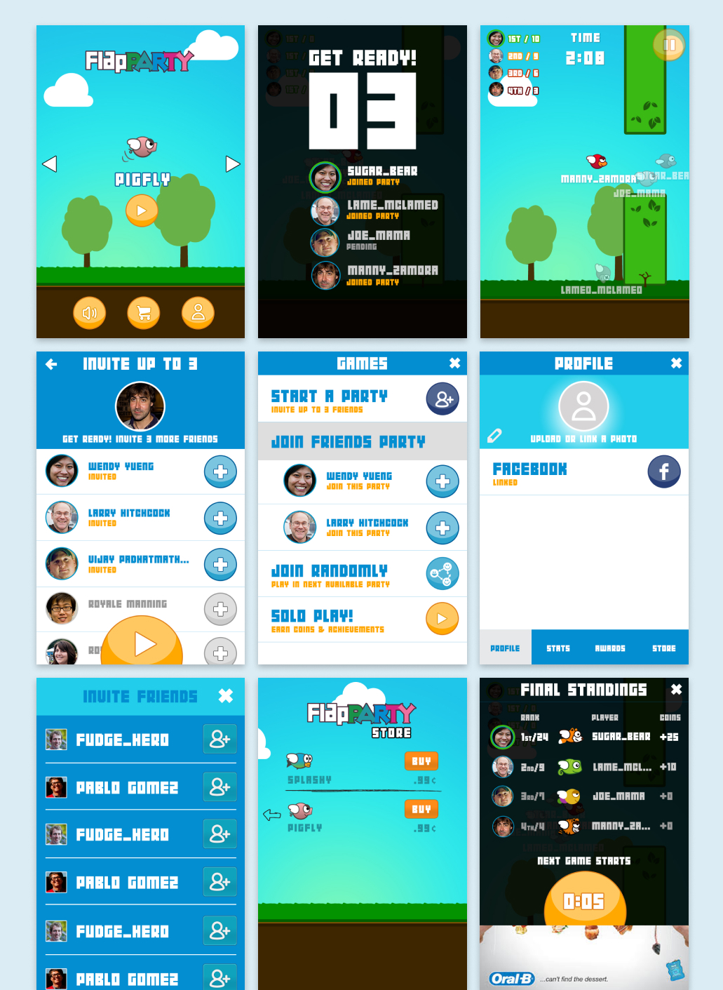 The popularity and global success of Flappy Bird, inspired the creation of the Flap Party game.